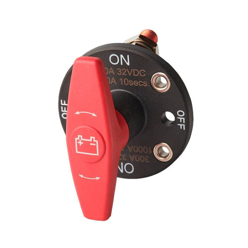 Водонепроницаемый двухпозиционный (ВКЛ/ВЫКЛ) однополюсный морской выключатель/главный выключатель аккумуляторной батареи, рассчитанный на непрерывный ток 300 А при напряжении 32 В постоянного тока. Этот выключатель со степенью защиты IP67 имеет максимальный пусковой ток 1000 А при напряжении 32 В постоянного тока в течение 10 секунд и оснащен приводом, который можно снять в положении «ВЫКЛ», что обеспечивает полезную меру безопасности.