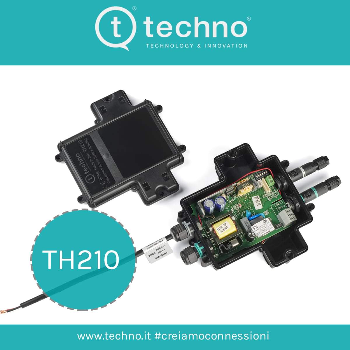Несмотря на компактные внешние размеры по сравнению с аналогичными продуктами на рынке распределительных коробок, TH210 предлагает полезное пространство xyz 80-108-34 мм, что позволяет вставлять электрические и электронные компоненты, такие как клеммные колодки, драйверы светодиодов, системы питания и управление антеннами и датчиками.