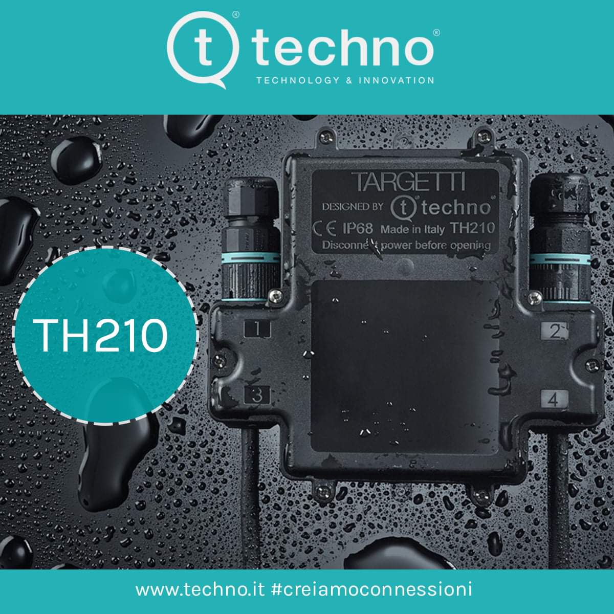 Распределительные коробки TH210 доступен в 3 основных версиях (в зависимости от положения разъемов) и могут быть до укомплектованы путем покупки необходимых аксессуаров Techno.