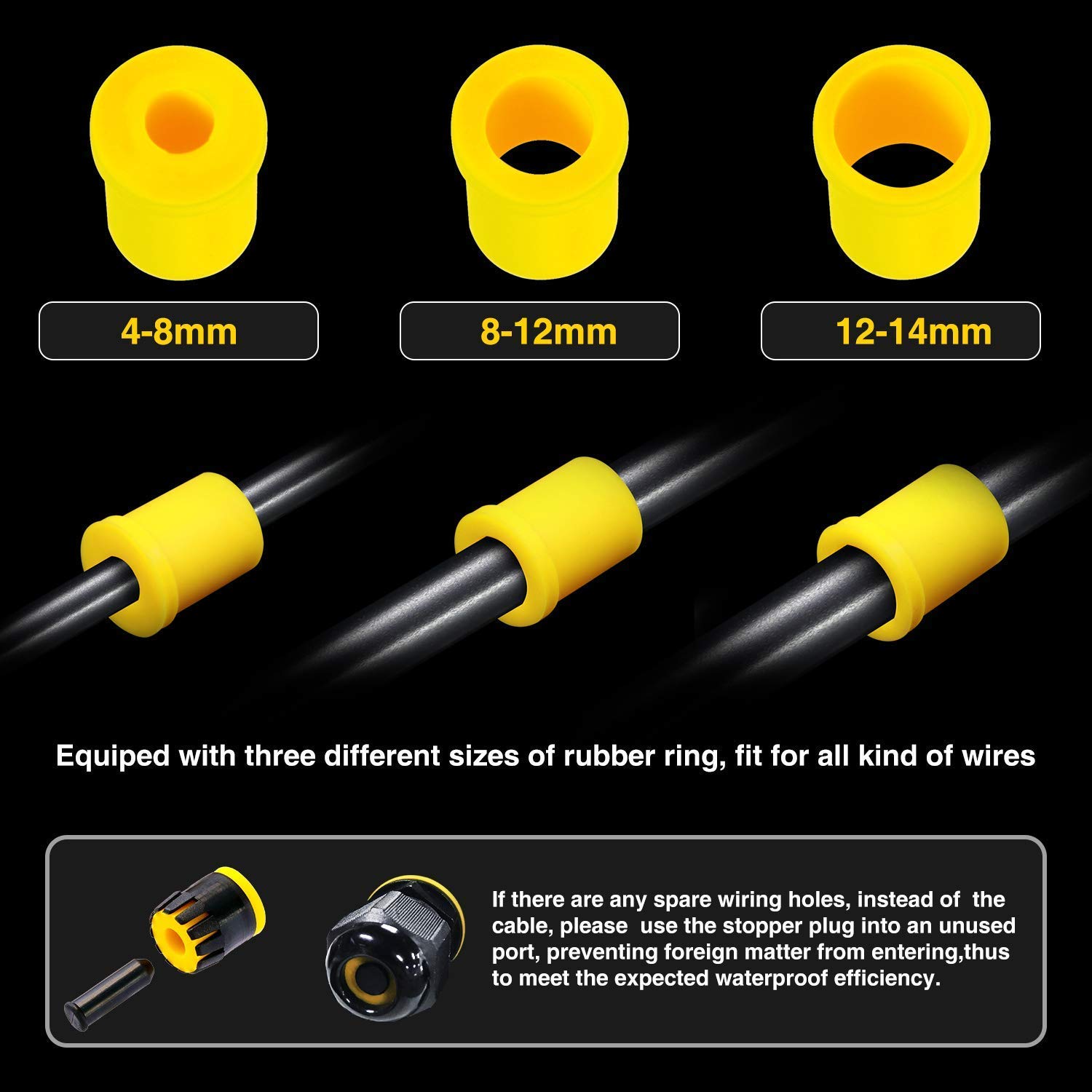 Самая большая распределительная коробка M686-S 3pin имеет 10 входов кабеля под диаметр от 4 мм до 14 мм. (в комплекте распределительных коробок дополнительные силиконовые уплотнители под разный диаметр кабеля).