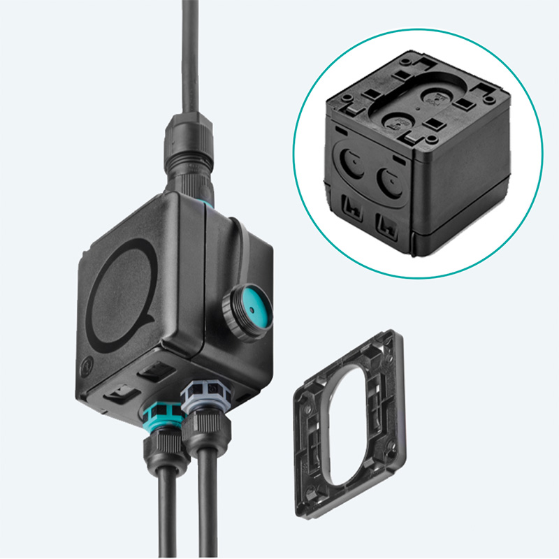 Внешние размеры распределительной коробки 72 x 75 x 57 мм и внутренние 50 x 50 x 46 мм делают его уникальным решением на рынке с точки зрения дизайна и компактности. Элегантная эстетика оптимальна для интеграции в архитектурно-декоративные проекты как внутри, так и снаружи помещений.