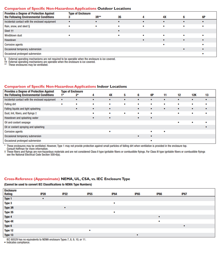 Производитель силовых разъемов Техно Италия получили сертификаты UL/CSA в соответствии с уровнем Type 6/6p, которые должны выдерживать суровые условия установки, такие как длительное погружение в воду (см. следующую таблицу).